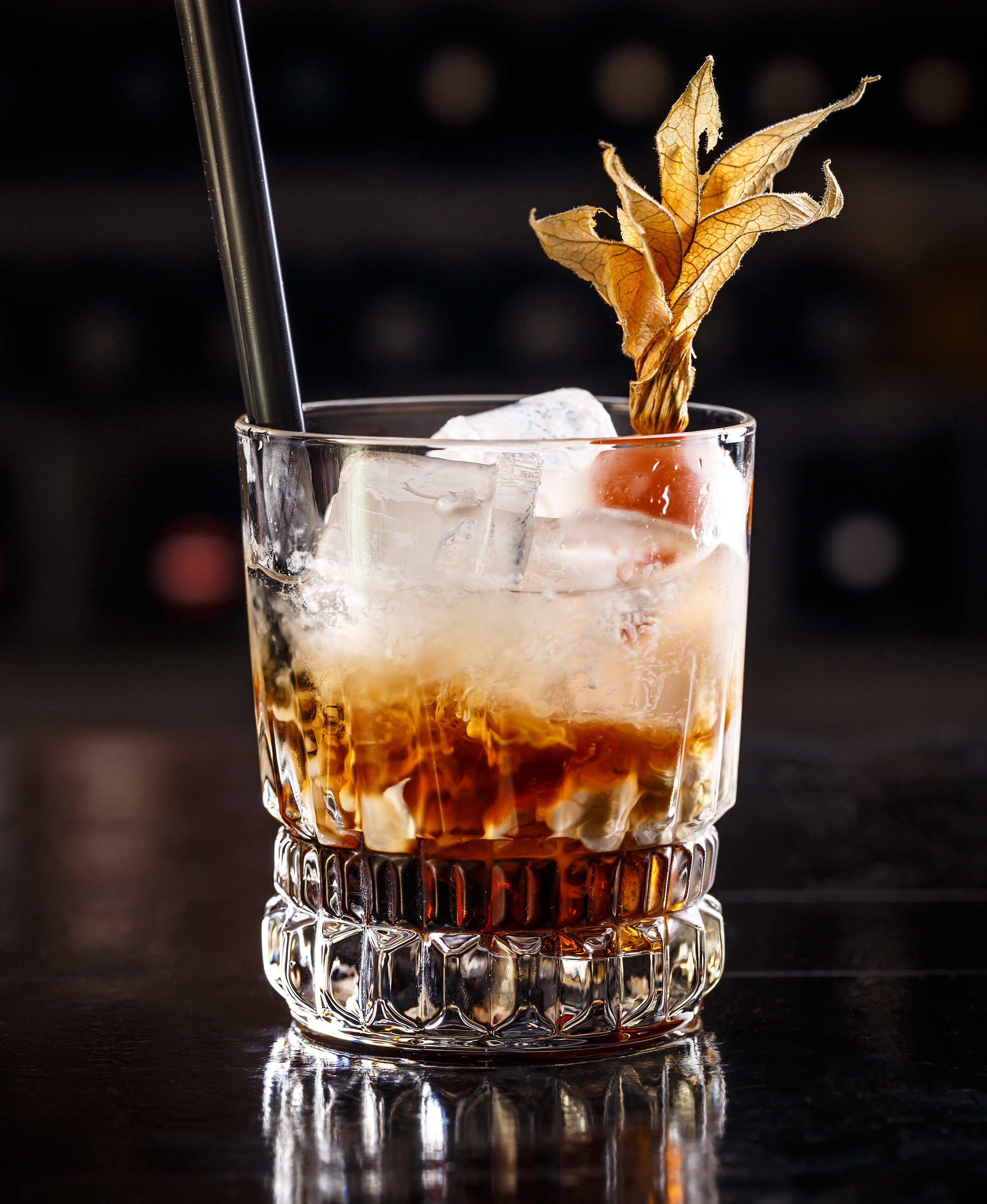 1. Tilsett vodka og Kahlua, inkludert isbiter, i et old fashionedglass.